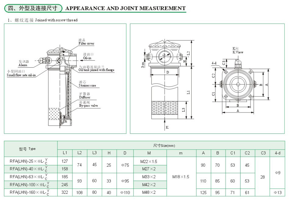 只需旋開過濾器濾蓋(清洗蓋)即可更換濾芯或向油箱加油,并在濾頭設有2只M18×1.5油口,可在任何一方安裝發訊器或系統中少量油液流回油箱過濾之用。