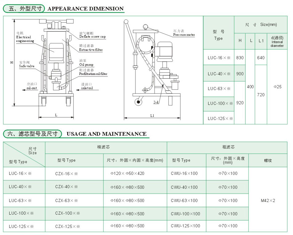 LUC濾油車吸油過濾器不僅適合于各類液壓油、潤滑油的過濾凈化,而且廣泛用于電站、電廠、變電工區(qū)、石油、化工、冶金、鋼鐵、交通、拖拉機站、國防工業(yè)等單位過濾凈化絕緣油、透平油、潤滑油、液壓油、機械油等液體油液中的雜質(zhì)微粒,能達(dá)到廢油再生的目的。